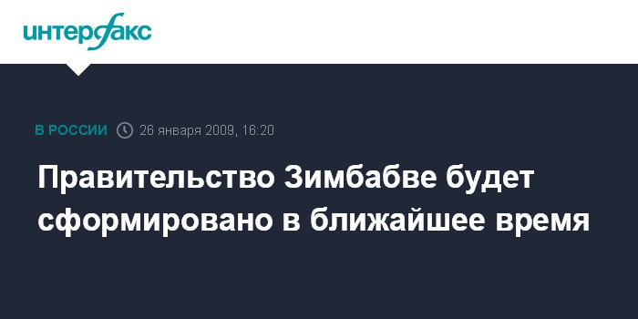 Йоханнесбург. 26 января. INTERFAX.RU - Президент Роберт Мугабе намерен сформировать новое правительство после возвращения из ЮАР, где он принимает участие в региональном саммите, сообщает южноафриканский информационный канал News-24 со ссылкой на заявление заместителя министра информации Зимбабве Брайта Матонги.