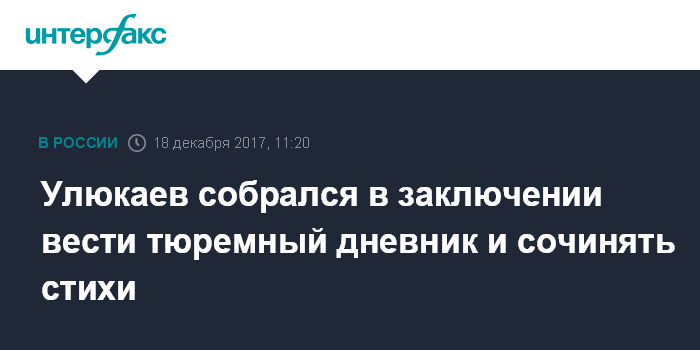 По ее словам, Улюкаев намерен в заключении вести дневник и писать стихи. Кроме этого, экс-министр планирует делать зарядку по утрам, сказала правозащитница, отметив, что на здоровье Улюкаев не жалуется.
