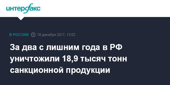 За два с лишним года в РФ уничтожили 18,9 тысяч тонн санкционной продукции