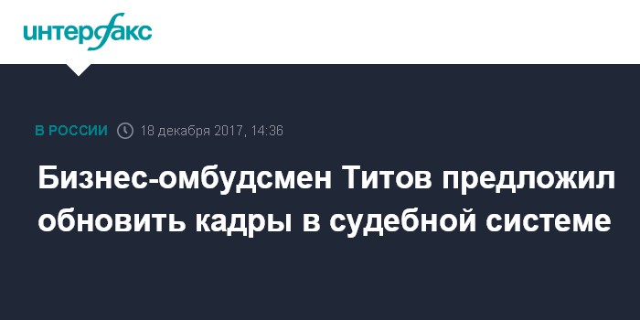 Москва. 18 декабря. INTERFAX.RU - Бизнес-омбудсмен, лидер "Партии Роста" Борис Титов предложил "призвать" в российскую судебную систему тысячу адвокатов для ее обновления.