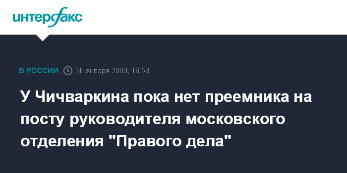 Москва. 26 января. INTERFAX.RU - Ранее 28 января, когда Басманный суд рассмотрит запрос Следственного комитета об аресте бизнесмена Евгения Чичваркина, в партии "Правое дело" не намерены рассматривать другие кандидатуры на пост главы ее московского отделения.