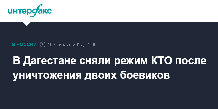 "В 10:00 по московскому времени 19 декабря режим КТО на территории Гумбетовского района Дагестана прекращен", - сказал собеседник агентства.