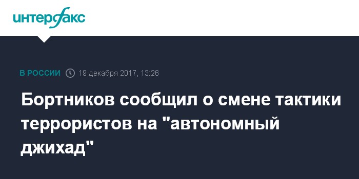 Москва. 19 декабря. INTERFAX.RU - Лидеры международных террористических организаций (МТО) ориентируют своих сторонников на осуществление "автономного джихада", направленного на гражданских лиц, правоохранителей и объекты инфраструктуры. Об этом заявил во вторник директор ФСБ РФ Александр Бортников.