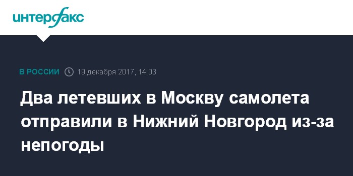 В пресс-службе ПАО "Международный аэропорт "Нижний Новгород" агентству "Интерфакс" сообщили, что в настоящее время в аэропорту приземлились два самолета, летевшие в московский аэропорт "Домодедово" из Воронежа и Санкт-Петербурга. Также вынужден был вернуться обратно рейс, вылетевший в столицу из Нижнего Новгорода.