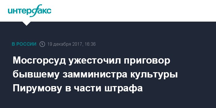 Мосгорсуд ужесточил приговор бывшему замминистра культуры Пирумову в части штрафа