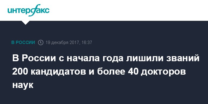 В России с начала года лишили званий 200 кандидатов и более 40 докторов наук