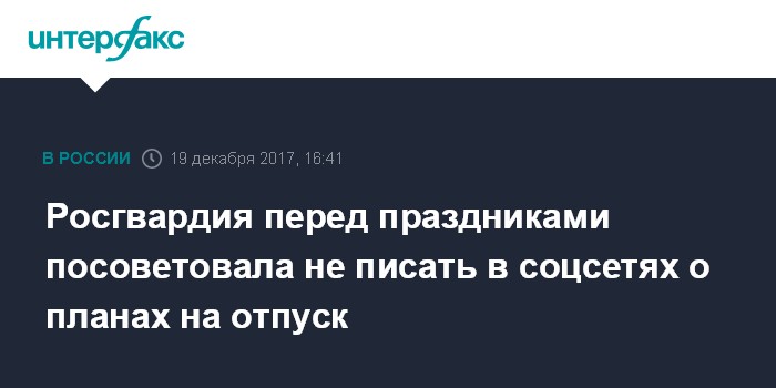 Росгвардия перед праздниками посоветовала не писать в соцсетях о планах на отпуск