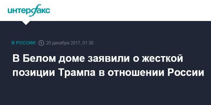 Москва. 20 декабря. INTERFAX.RU - Президент США Дональд Трамп и его администрация занимают жесткую позицию в отношении России, заявила пресс-секретарь Белого дома Сара Сандерс.