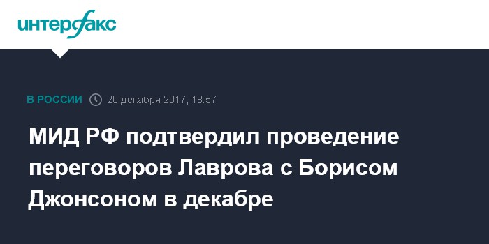 Москва. 20 декабря. INTERFAX.RU - Переговоры главы МИД РФ Сергея Лаврова и его британского коллеги Бориса Джонсона запланированы в Москве на 22 декабря, подтвердили "Интерфаксу" в российском внешнеполитическом ведомстве.