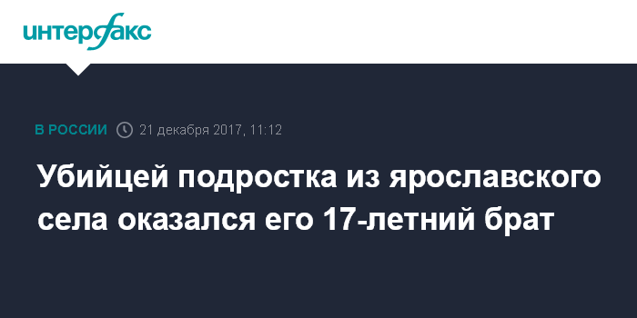 Москва. 21 декабря. INTERFAX.RU - В селе Сарафоново под Ярославлем раскрыто убийство 15-летнего подростка, по делу задержан его 17-летний брат, сообщила "Интерфаксу" старший помощник руководителя управления СКР по Ярославской области Кристина Гузовская.