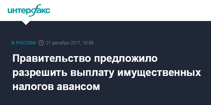 Правительство предложило разрешить выплату имущественных налогов авансом