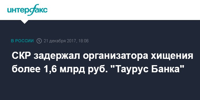 СКР задержал организатора хищения более 1,6 млрд руб. "Таурус Банка"