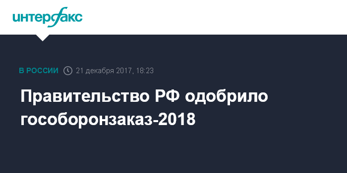 Москва. 21 декабря. INTERFAX.RU - Гособоронзаказ на 2018 год одобрен правительством РФ на заседании в четверг, сообщил вице-премьер РФ Дмитрий Рогозин.