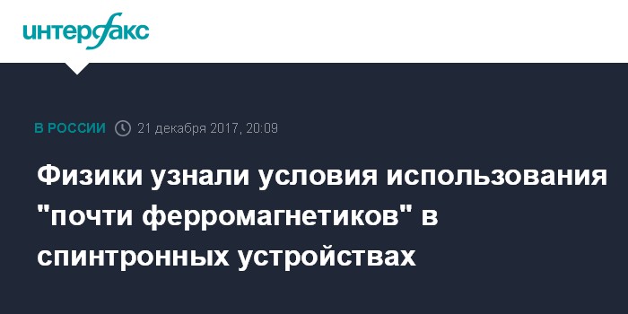Москва. 21 декабря. INTERFAX.RU - Ученые из Института теоретической физики (ИТФ) имени Ландау выяснили, при каких условиях наночастицы из "почти ферромагнетиков" можно использовать в спинтронных устройствах – электронных устройствах нового типа, в которых протекание электрического тока сопровождается изменением магнитного состояния системы и наоборот. О своих результатах физики доложили на "Зимней школе по локализации, взаимодействиям и сверхпроводимости", проходившей в ИТФ.