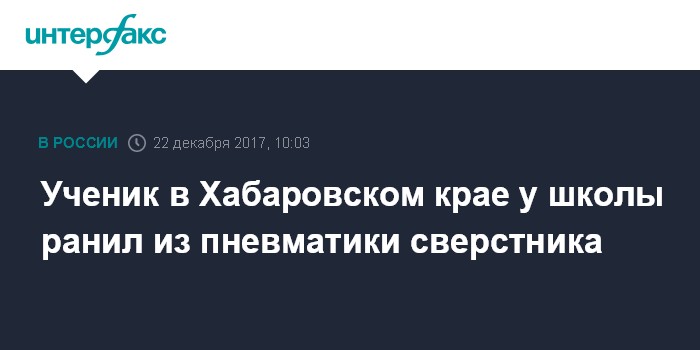 Ученик в Хабаровском крае у школы ранил из пневматики сверстника