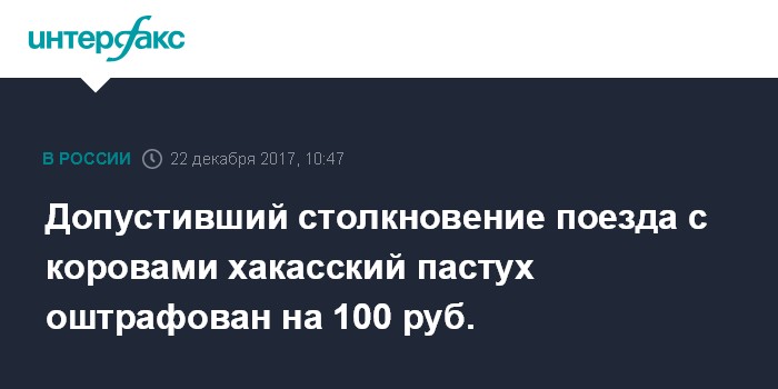 Допустивший столкновение поезда с коровами хакасский пастух оштрафован на 100 руб.