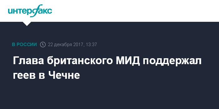 Москва. 22 декабря. INTERFAX.RU - Глава МИД Великобритании Борис Джонсон высказался в поддержку представителей ЛГБТ-сообщества в Чечне.
