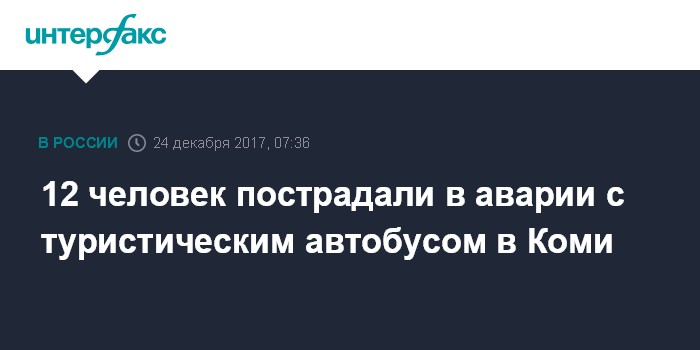 Москва. 24 декабря. INTERFAX.RU - Больше десятка человек получили травмы в аварии пассажирского автобуса в Коми, сообщил "Интерфаксу" источник в службе транспортного надзора региона.
