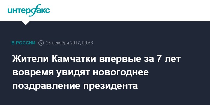 Жители Камчатки впервые за 7 лет вовремя увидят новогоднее поздравление президента
