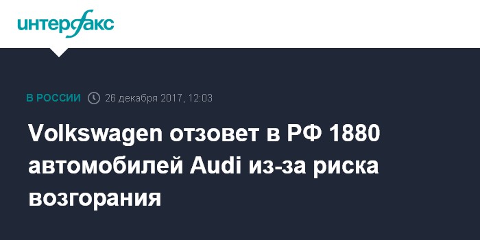 Volkswagen отзовет в РФ 1880 автомобилей Audi из-за риска возгорания