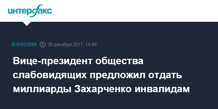 Вице-президент общества слабовидящих предложил отдать миллиарды Захарченко инвалидам