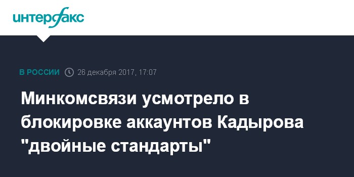 Москва. 26 декабря. INTERFAX.RU - Глава Минкомсвязи Николай Никифоров назвал проявлением двойных стандартов удаление аккаунтов руководителя Чечни Рамзана Кадырова из Facebook и Instagram, отметив, что в этой ситуации должны разбираться Минюст и прокуратура.