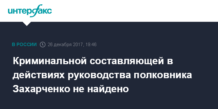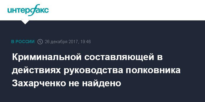Криминальной составляющей в действиях руководства полковника Захарченко не найдено