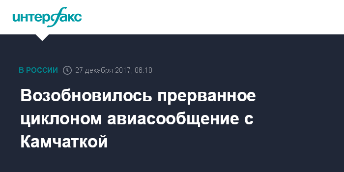 Возобновилось прерванное циклоном авиасообщение с Камчаткой