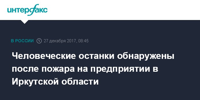 Человеческие останки обнаружены после пожара на предприятии в Иркутской области