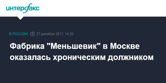 Фабрика "Меньшевик" в Москве оказалась хроническим должником