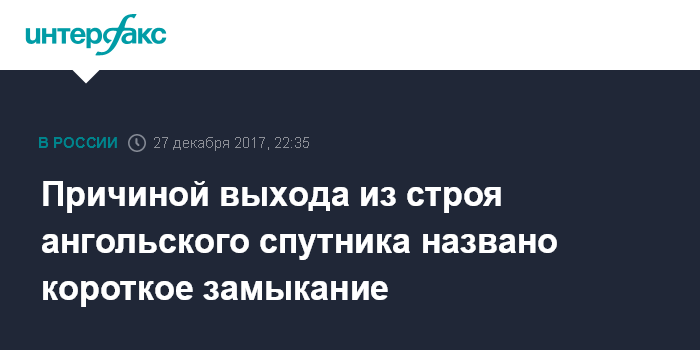 Причиной выхода из строя ангольского спутника названо короткое замыкание