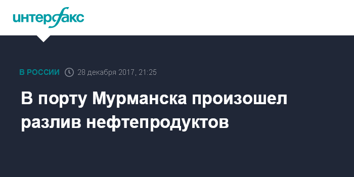 "Около 20.25 мск у причала N41 второго грузового района Мурманского морского рыбного порта (ММРП - ИФ) произошел розлив нефтепродуктов около 3-4 кубометров", - рассказал собеседник агентства.