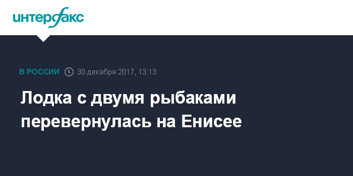 Москва. 30 декабря. INTERFAX.RU - Лодка с двумя рыбаками перевернулась на реке Енисей вблизи города Железногорска, сообщила официальный представитель МВД России Ирина Волк.