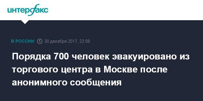 Порядка 700 человек эвакуировано из торгового центра в Москве после анонимного сообщения