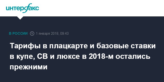 Тарифы в плацкарте и базовые ставки в купе, СВ и люксе в 2018-м остались прежними