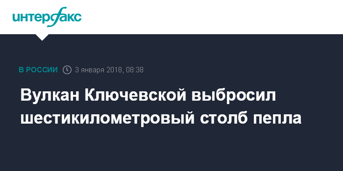 Москва. 3 января. INTERFAX.RU - Столб пепла высотой до 6 км над уровнем моря выбросил вулкан Ключевской на Камчатке, сообщает в среду Камчатская группа наблюдения за вулканическими извержениями (KVERT).