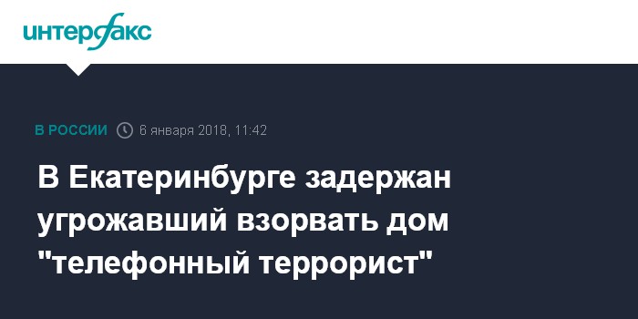 Москва. 6 января. INTERFAX.RU - В Екатеринбурге возбуждено уголовное дело по факту заведомо ложного сообщения о теракте, сообщил в субботу "Интерфаксу" руководитель пресс-службе ГУ МВД России по Свердловской области Валерий Горелых.