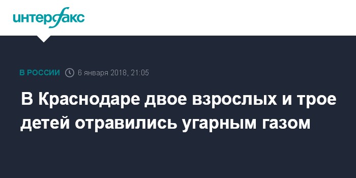Москва. 6 января. INTERFAX.RU - Пять человек госпитализированы в Краснодаре с признаками отравления угарным газом, сообщили "Интерфаксу" в пресс-службе главного управления МВД по краю в субботу.