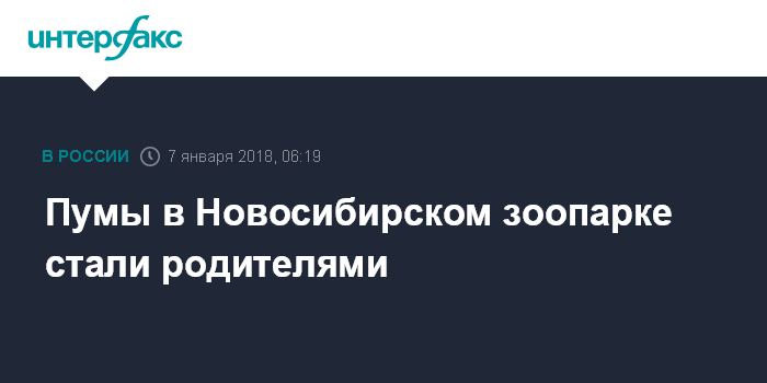 Москва. 7 января. INTERFAX.RU - Живущие в Новосибирском зоопарке пумы Милана и Гудзон стали родителями, сообщает в воскресенье пресс-служба зоопарка.