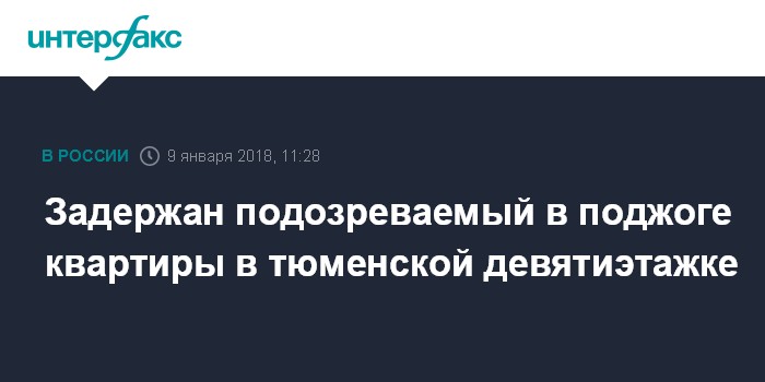 Москва. 9 января. INTERFAX.RU - Полицейские задержали мужчину, подозреваемого в поджоге квартиры в многоэтажном доме в Тюмени, в результате которого погиб человек.