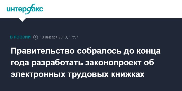 В начале декабря источник агентства сообщал, что Голодец после письма главы Сбербанка Германа Грефа поручила Минэкономразвития и Минтруду рассмотреть вопрос о включении в законопроектные планы правительства на 2018 год разработку поправок, касающихся электронных трудовых книжек и электронных подписей в трудовых договорах.