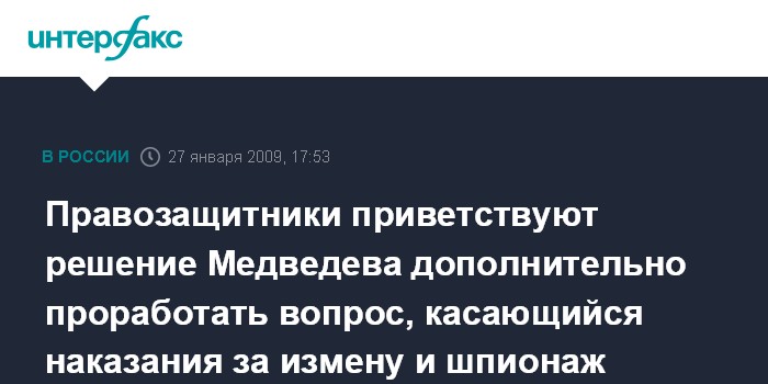 Правозащитники приветствуют решение Медведева дополнительно проработать вопрос, касающийся наказания за измену и шпионаж