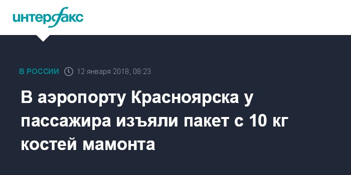 В аэропорту Красноярска у пассажира изъяли пакет с 10 кг костей мамонта