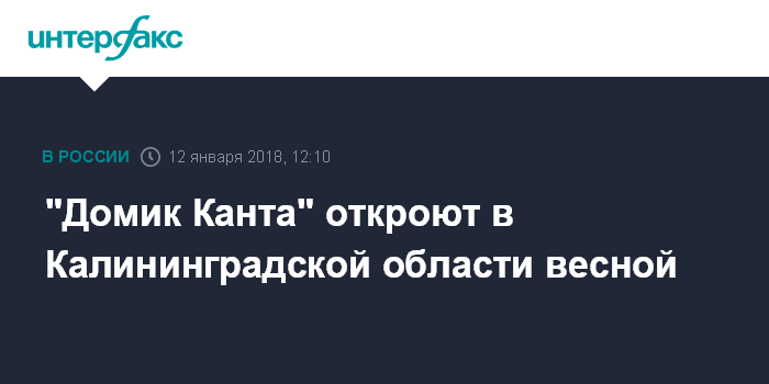Москва. 12 января. INTERFAX.RU - В Калининградской области весной появится новый туристический объект, связанный с именем выдающегося философа Иммануила Канта, сообщил "Интерфаксу" директор Калининградского областного историко-художественного музея Сергей Якимов.