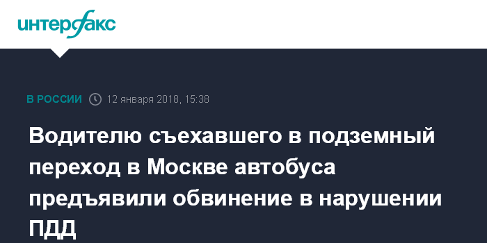 Водителю съехавшего в подземный переход в Москве автобуса предъявили обвинение в нарушении ПДД