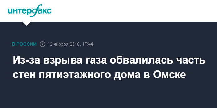 Москва. 12 января. INTERFAX.RU - Взрыв газа произошел в пятиэтажном доме в Омске, одна из стен частично обвалилась, сообщил "Интерфаксу" в пятницу осведомленный источник.