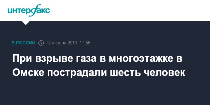 Москва. 12 января. INTERFAX.RU - При взрыве бытового газа в жилой многоэтажке в Омске пострадали шесть человек, сообщил "Интерфаксу" источник в экстренных службах.