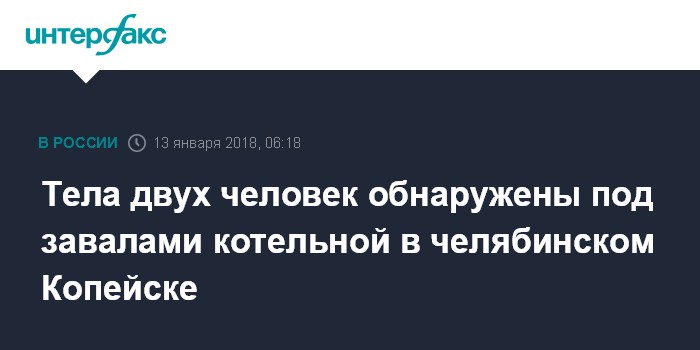 Москва. 13 января. INTERFAX.RU - Тела погибших обнаружены под завалами заброшенного здания в Копейске Челябинской области, сообщает пресс-центр Поисково-спасательной службы региона в субботу.