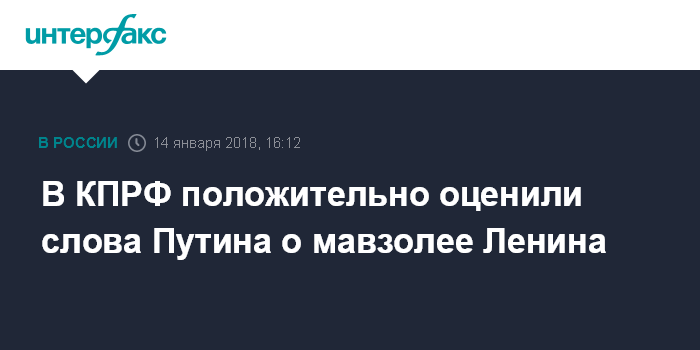 Москва. 14 января. INTERFAX.RU - В КПРФ положительно оценивают высказывания президента РФ Владимира Путина о том, что коммунистическая идеология взаимосвязана с христианством и считают, что это сглаживает острые углы вокруг темы Мавзолея Ленина.