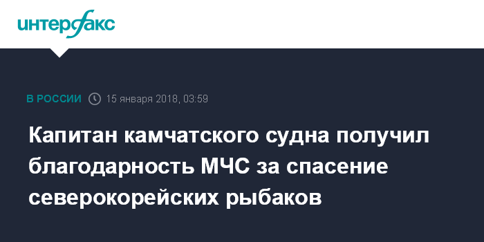 Капитан камчатского судна получил благодарность МЧС за спасение северокорейских рыбаков